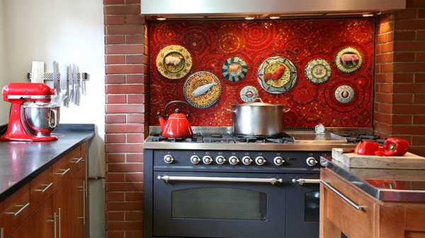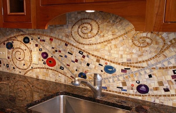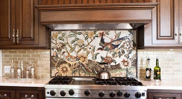 Ну, и конечно, нельзя забывать о мозаичном оформлении фартука – пожалуй, самом интересном и дающем простор фантазии способе оформления кухонного фартука!