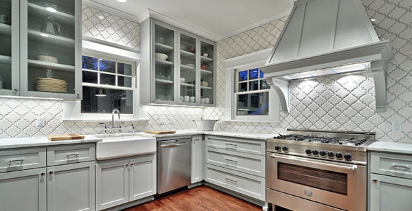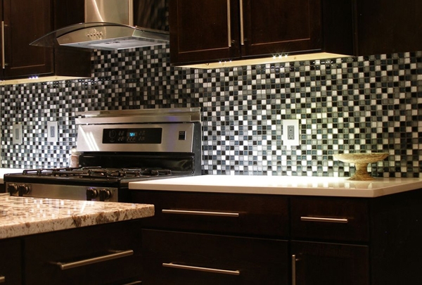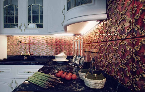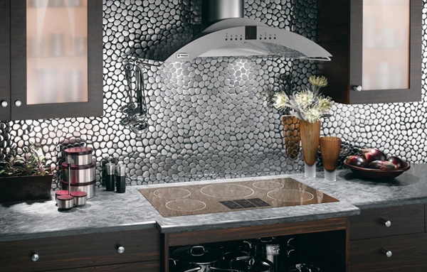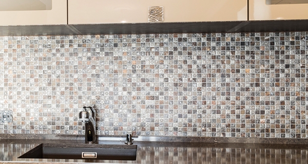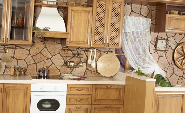 В таком случае, оформление фартука каменной плиткой и керамической плиткой – не самый оптимальный вариант. Лучше отдать предпочтение керамограниту или стеклянной плитки.
