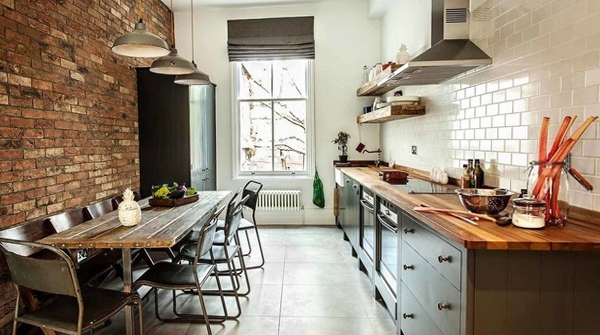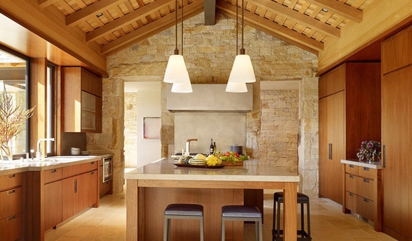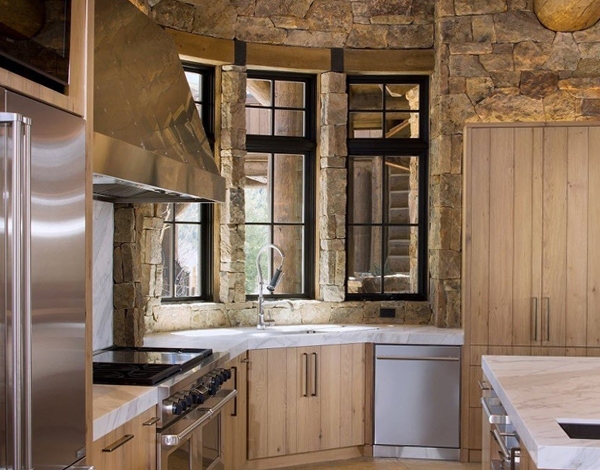 Дизайнеры не рекомендуют полностью отделывать кухню каменной плиткой, ведь благодаря натуральной фактурности и неравномерности объёма, подобная отделка способна визуально «съесть» пространство. Кроме того, переборщить с такой отделкой легко, а вот вернуть утраченный шарм – крайне сложно!