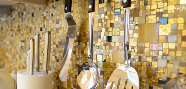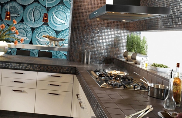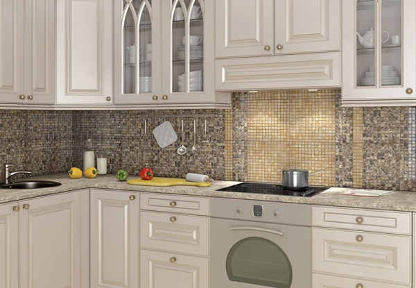 Однако обратите внимание на тот факт, что полностью отделанная мозаикой кухня теряет обаяние, а потому применяйте мозаику в отделке лишь в сочетании с другими материалами – будь то керамическая плитка или обои для кухни.