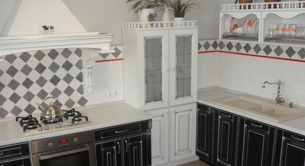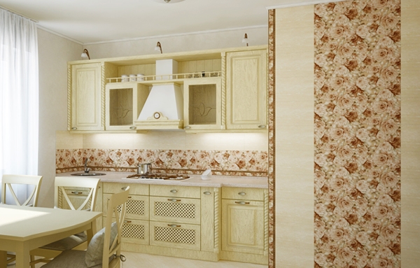 Оформлять плиткой абсолютно всё пространство кухни невыгодно и непрактично. Кроме того, подобный дизайн может натолкнуть на ассоциации с больницей или другим казённым учреждением, а на нашей кухне мы, прежде всего, хотим добиться ощущения уюта, а потому идеальным вариантом оформления кухни предстаёт комбинирование различных материалов в отделке.