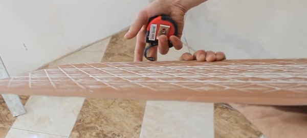 Укладка Укладываем плитку выбранным узором. Крестиками размечаем будущие швы.