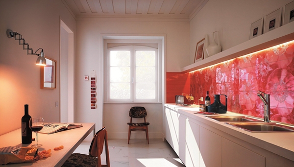 Кухня – особое место в каждой квартире, и сейчас мы говорим не о том, что именно кухня собирает нас за праздничным обедом и уютной вечерней чашкой чая, а о том, что все поверхности на кухне страдают от воздействия тепла, влаги, моющих средств, продуктов (в том числе, и содержащих кислоты). Кроме того, в процессе готовки образуется много грязи – соки овощей и фруктов, подтёки соусов и бульонов, капли масла и жира, а значит рабочие поверхности (и стены, в том числе) должны быть выполнены из материалов, очистка которых не доставит вам много хлопот. И плитка – именно такой материал!