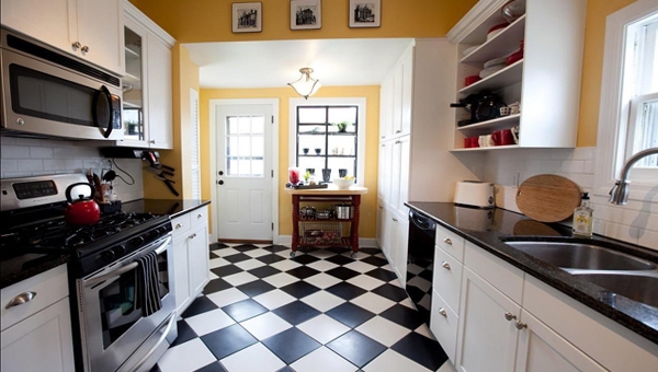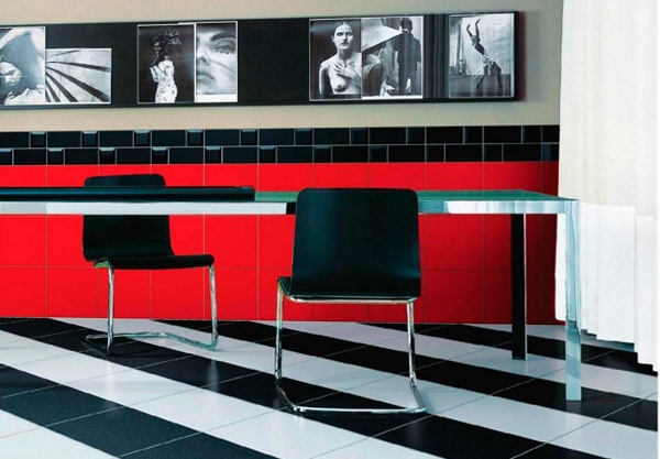 К слову, подобный вариант на полу позволит визуально сделать пространство кухни больше, тогда как применение подобного варианта в отделке стен способно сыграть с пространством полностью противоположную шутку.