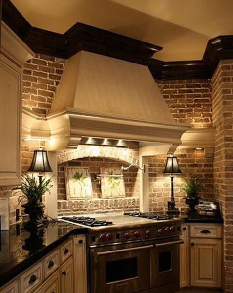 Интересным вариантом, однозначно делающим кухню уютней, станет оформление рабочей зоны у плиты в виде камина.