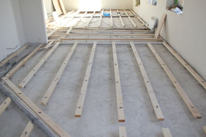 При осуществлении монтажа бруски укладываются на ребро. Это позволяет увеличить жёсткость конструкции. При иготовлении лаг размеры бруса должны быть вдвое менее уровня высоты.